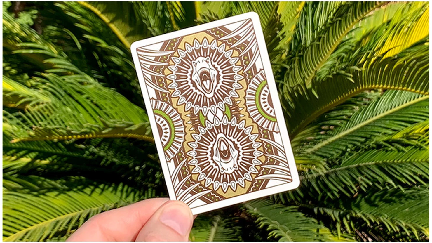 A fully custom dinosaur themed deck featuring featuring metallic ink on the card backs and box. A great deck for any use or to just add to your collection.