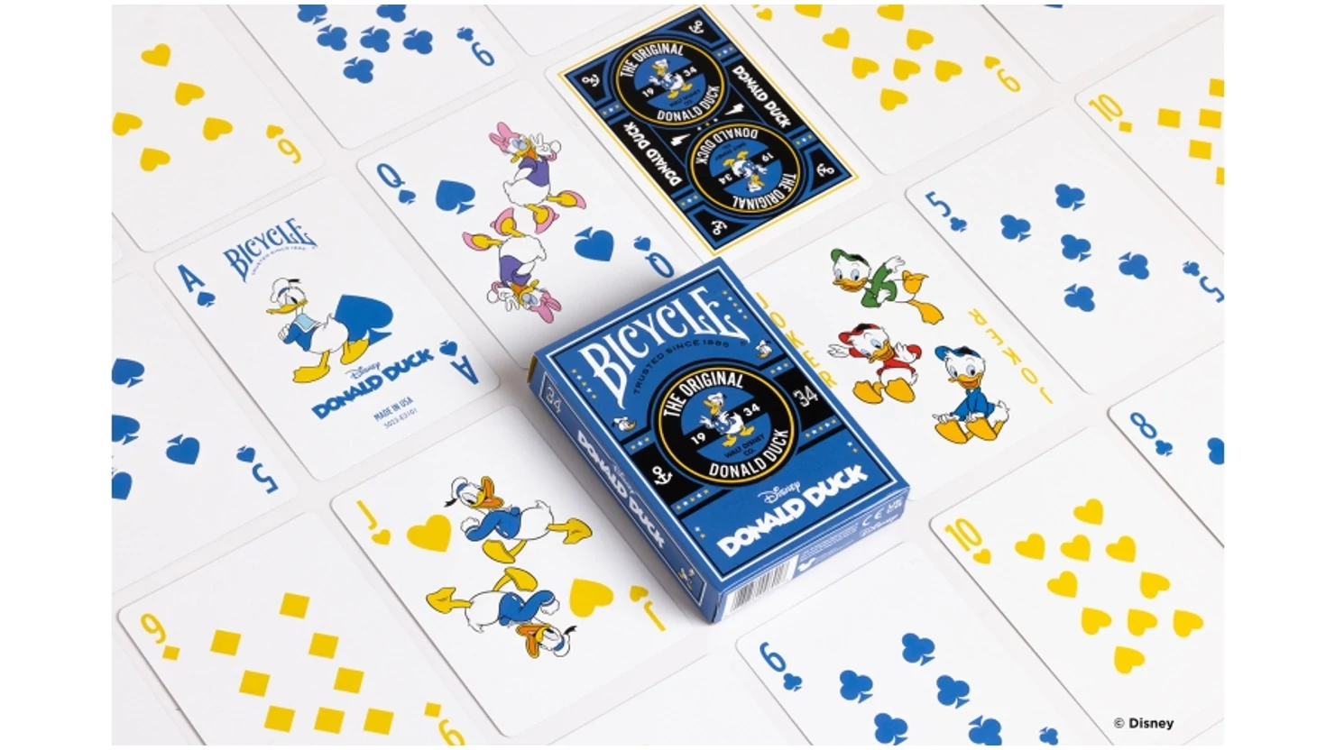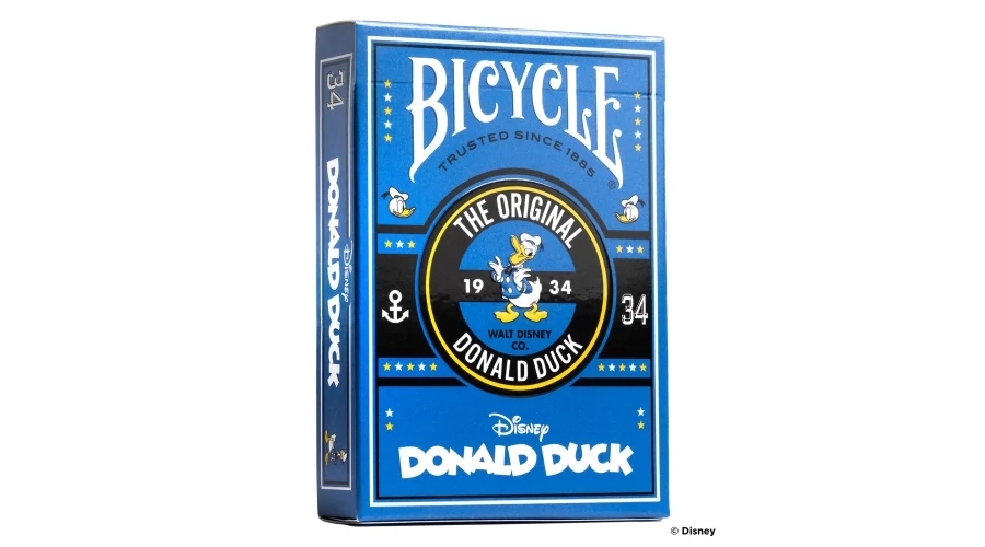 Showcasing the original disgruntled duck, Disney Classic Donald Duck Inspired Playing Cards by Bicycle are full of whimsical delight. With custom card backs and a spot varnished tuck case, these cards are a quacking good time.