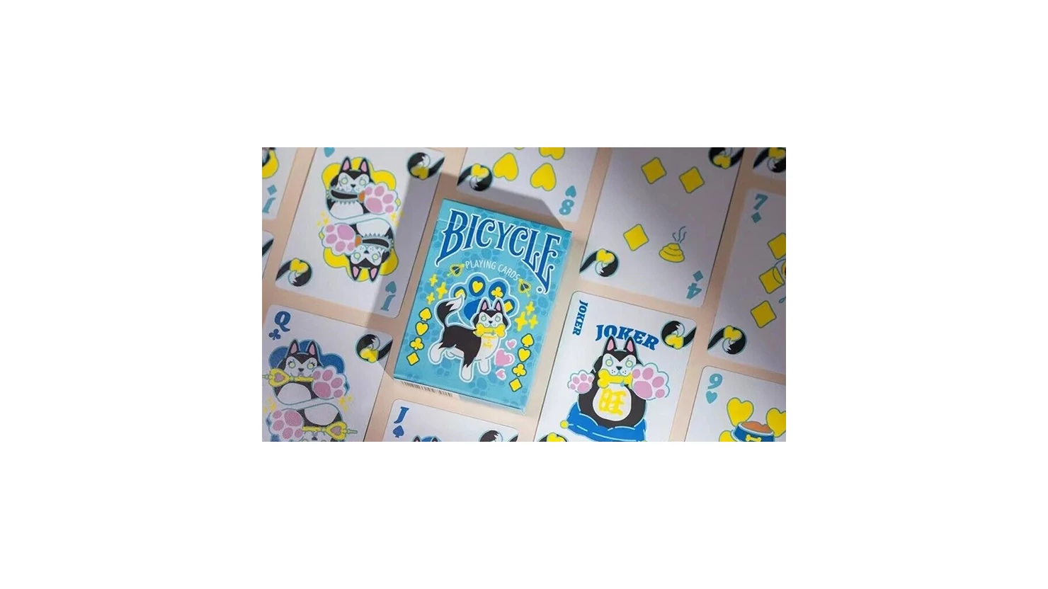 Pink and blue classic color scheme, a cute innovation of a century old classic Bicycle cards. Cow cats and Huskies, directly hitting the hearts of pet lovers. With dog and cat court card designs, and the fluorescent ink, you'll be dealing out a universe of entertainment.