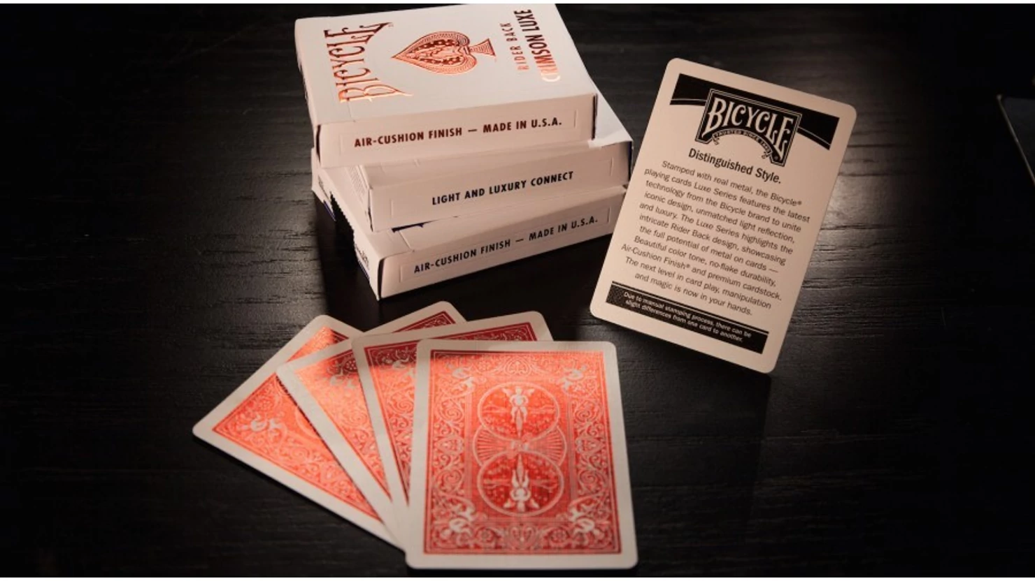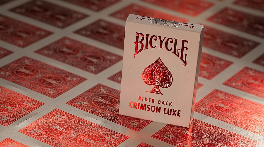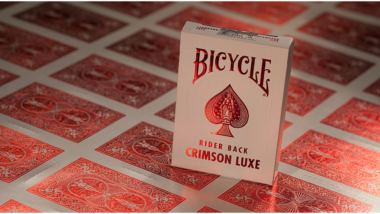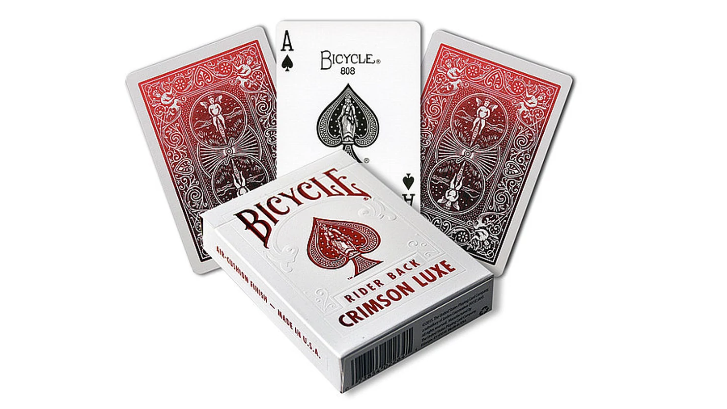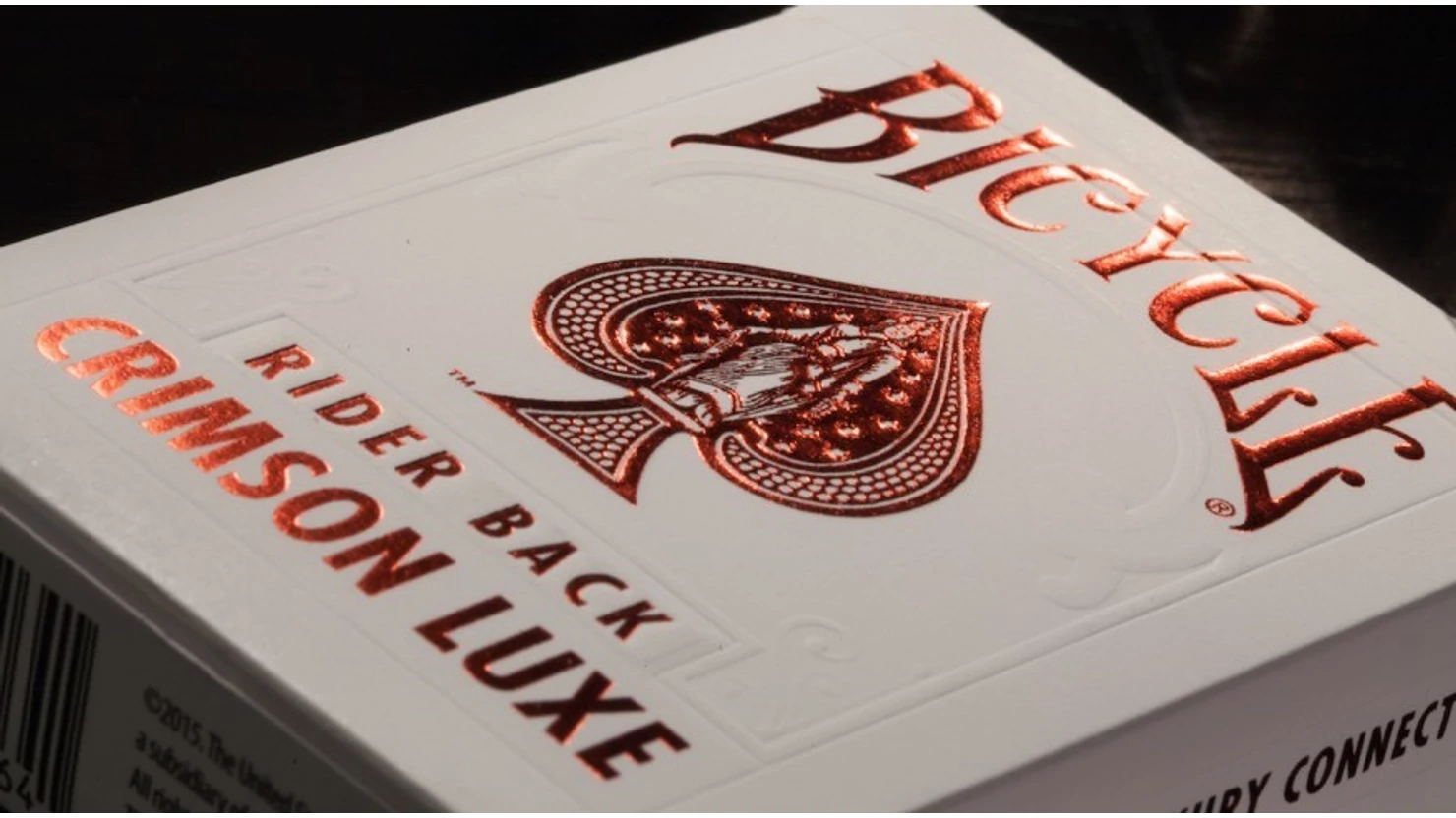 Csodálatos, szinte teljes egészében fehér, dombornyomott dobozban érkezik a Bicycle új csodája! A dobozon a feliratok, valamint a kártyalapok megszokott Rider Back hátlap grafikája karmazsinvörös színű fémtartalmú festékkel készült, ezzel adván elegáns csillogást fény felé fordítva. A lapok Air-Cushion Finish bevonattal készültek.