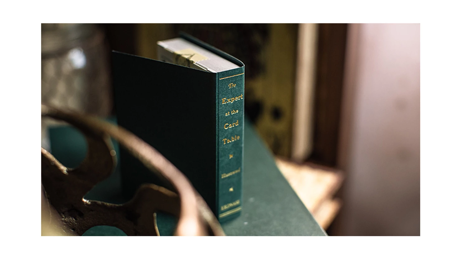 Fig. 25 Playing Cards is a detailed tribute to Erdnase and the infamous Expert at the Card Table book. Not only do the decks include illustrations from the book, each deck is uniquely wrapped to look like a mini replica Expert at the Card Table book.