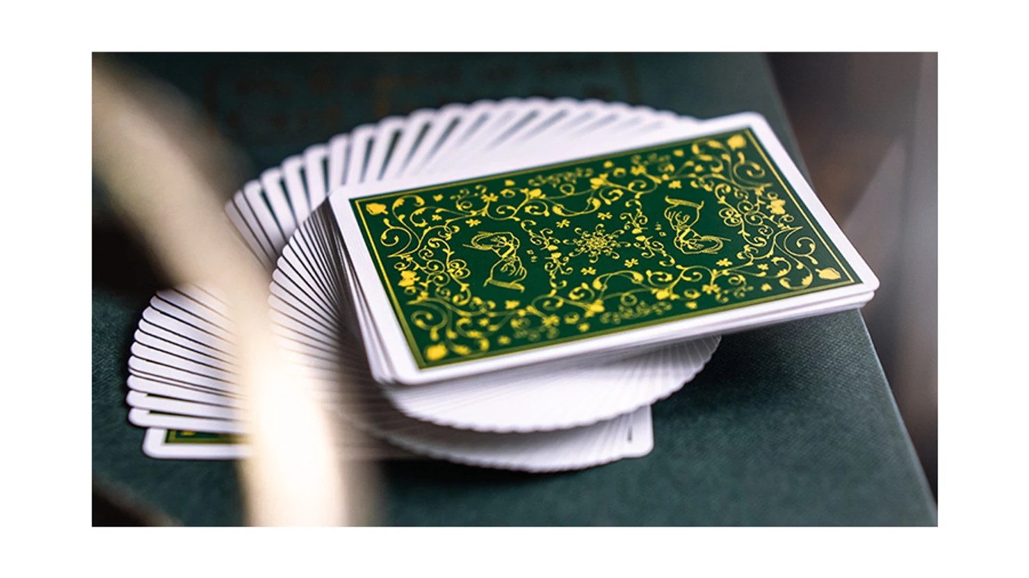 - 52 custom Erdnase illustrated cards with elegant green metallic backs