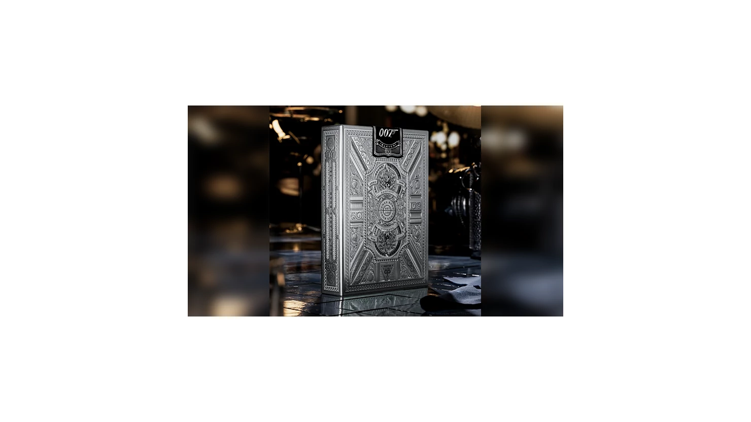 The finest, opulent silver foil with tactile embossing on each box. Striking gunmetal silver foil on every card within. Featuring completely custom artwork in every aspect of the design, with the Ace of Spades, Joker, box design, and court cards inspired by iconic Bond films, gadgets, and weapons over the past six decades.