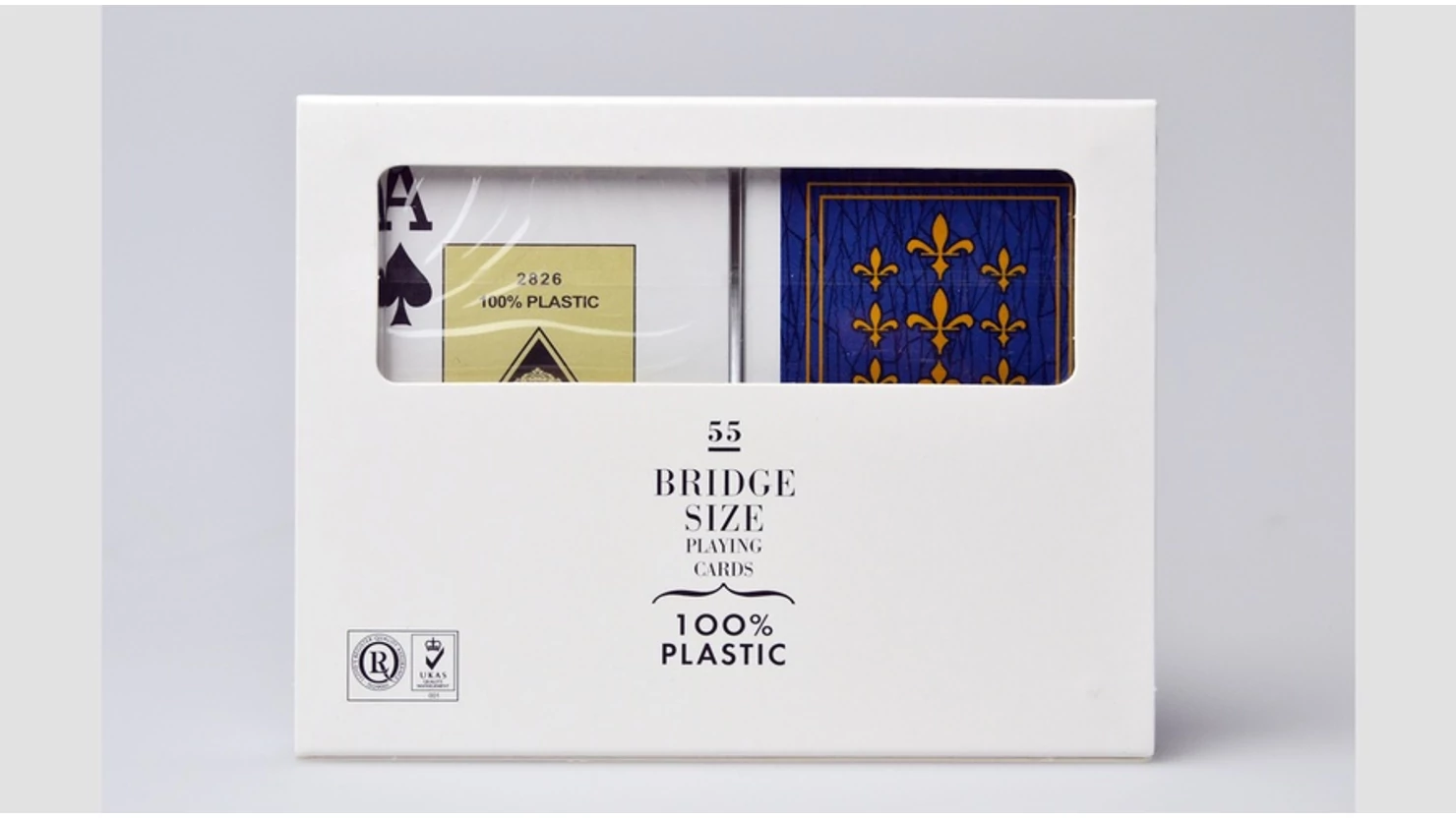 1 piros és 1 kék hátlapú, 100% műanyag kártya, csomagonként 52 lap + 3 joker, Jumbo index 2 sarokban, kemény műanyag dobozban