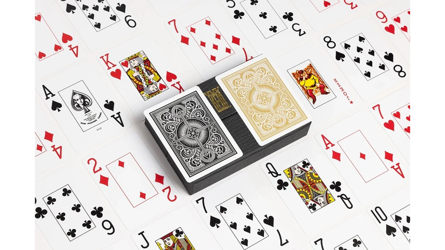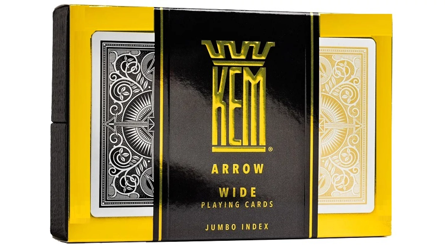Hagyományosan a világ legjobb minőségű kártyájának tartják a KEM kártyákat. Cellulose Acetat anyagú dupla csomag (egy fekete és egy arany hátlapszínű). Csomagonként 52 lap + 2 Joker + 1 lap "Poker Guide", póker méret, Jumbo index 2 sarokban, kemény fekete karton tartóban.