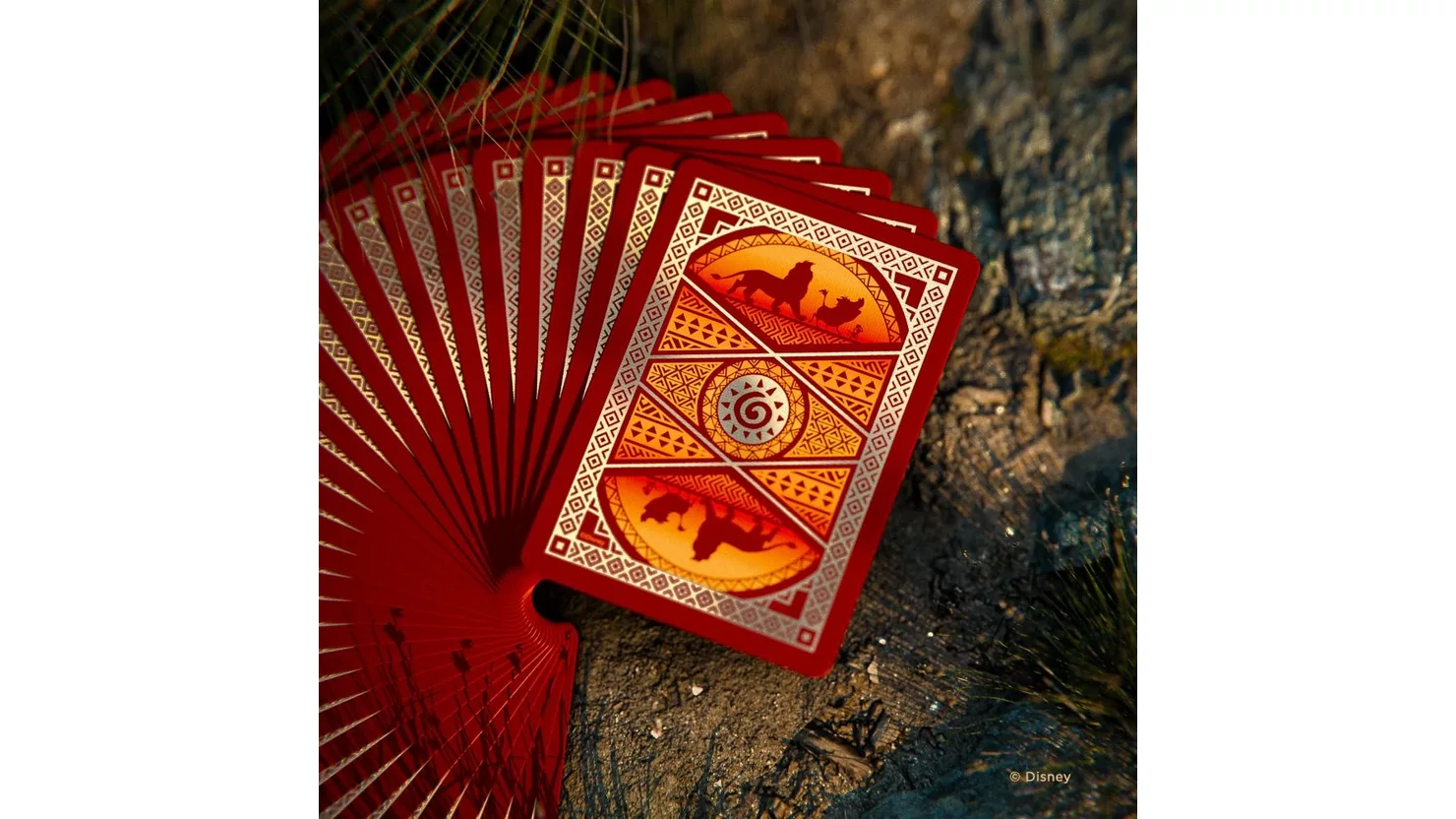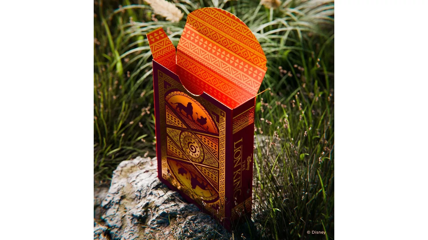 Become the king of game night with Disney Lion King Inspired Playing Cards by Bicycle! Shimmering cold-foil ignites the tuck, card faces and card backs to shine like the savannah sunset, while the legendary lions of Pride Rock grace the court cards with their real elegance. You'll have no worries with the Hakuna Matata ace of Spades in your hand!
