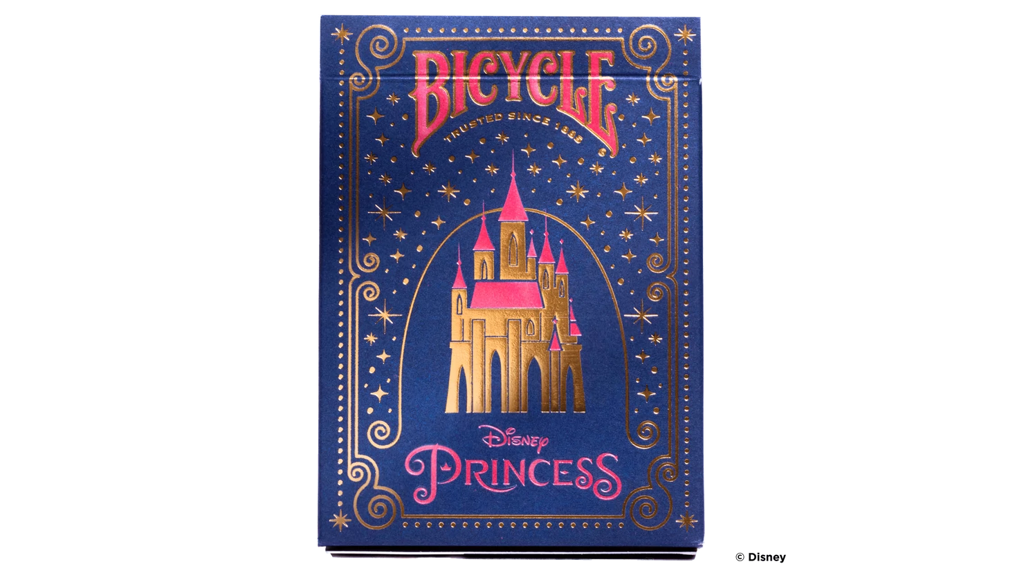 The Disney Princess franchise dreams, creates, and celebrates the most magical adventures, each woven around the relatable, empowered heroine who delights everyone and inspires people to realize their full potential. Bicycle® Disney Princess Playing Cards showcase the iconic Disney castle on the front, with gold and holographic foil accents on the tuck case. The card faces feature court cards with artwork of 12 different Disney Princesses.