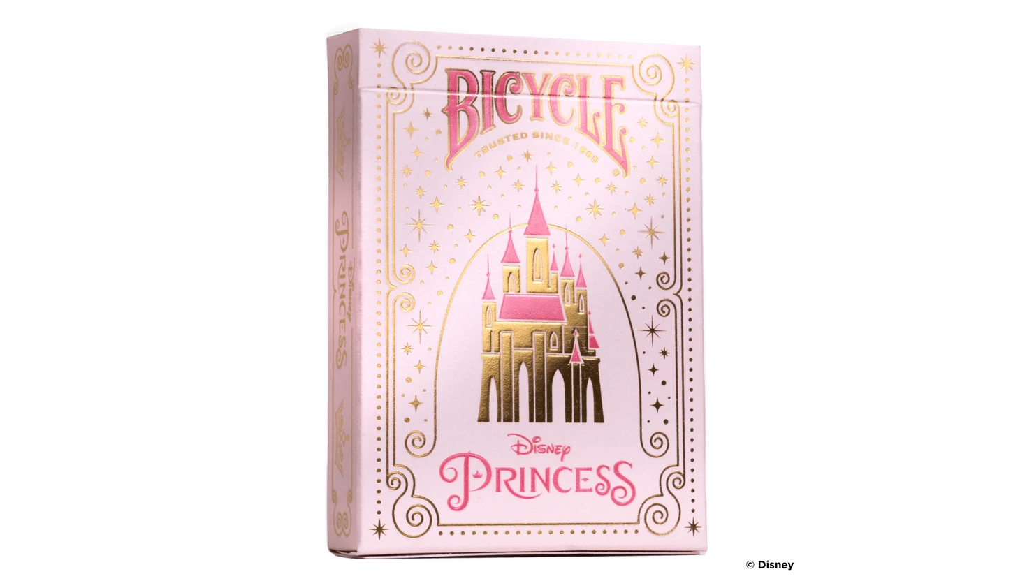 The Disney Princess franchise dreams, creates, and celebrates the most magical adventures, each woven around the relatable, empowered heroine who delights everyone and inspires people to realize their full potential. Bicycle® Disney Princess Playing Cards showcase the iconic Disney castle on the front, with gold and holographic foil accents on the tuck case. The card faces feature court cards with artwork of 12 different Disney Princesses.