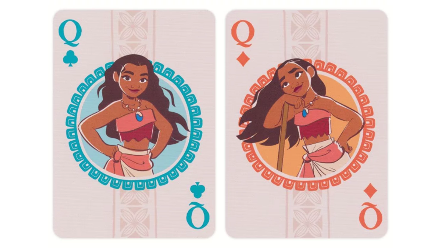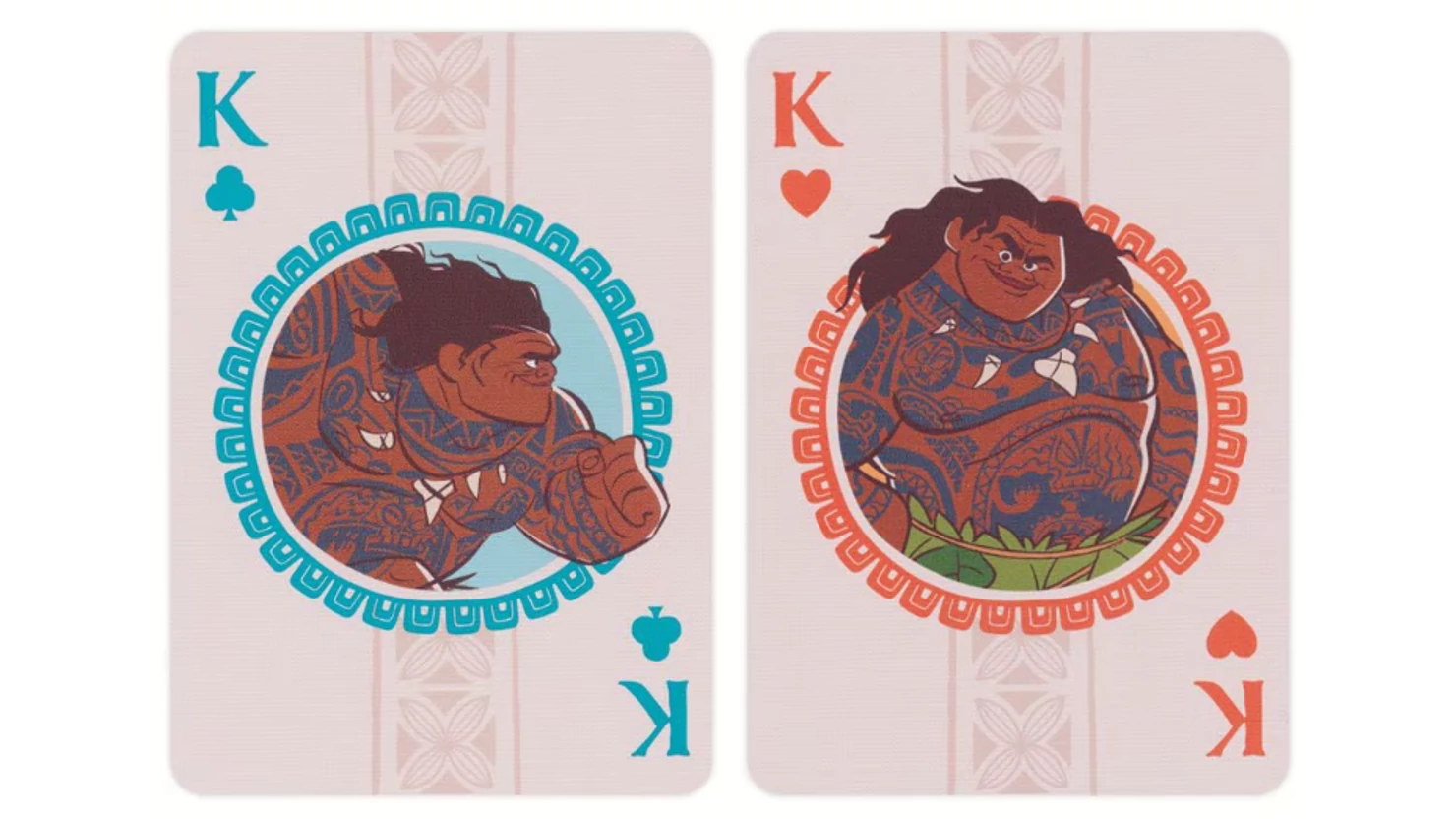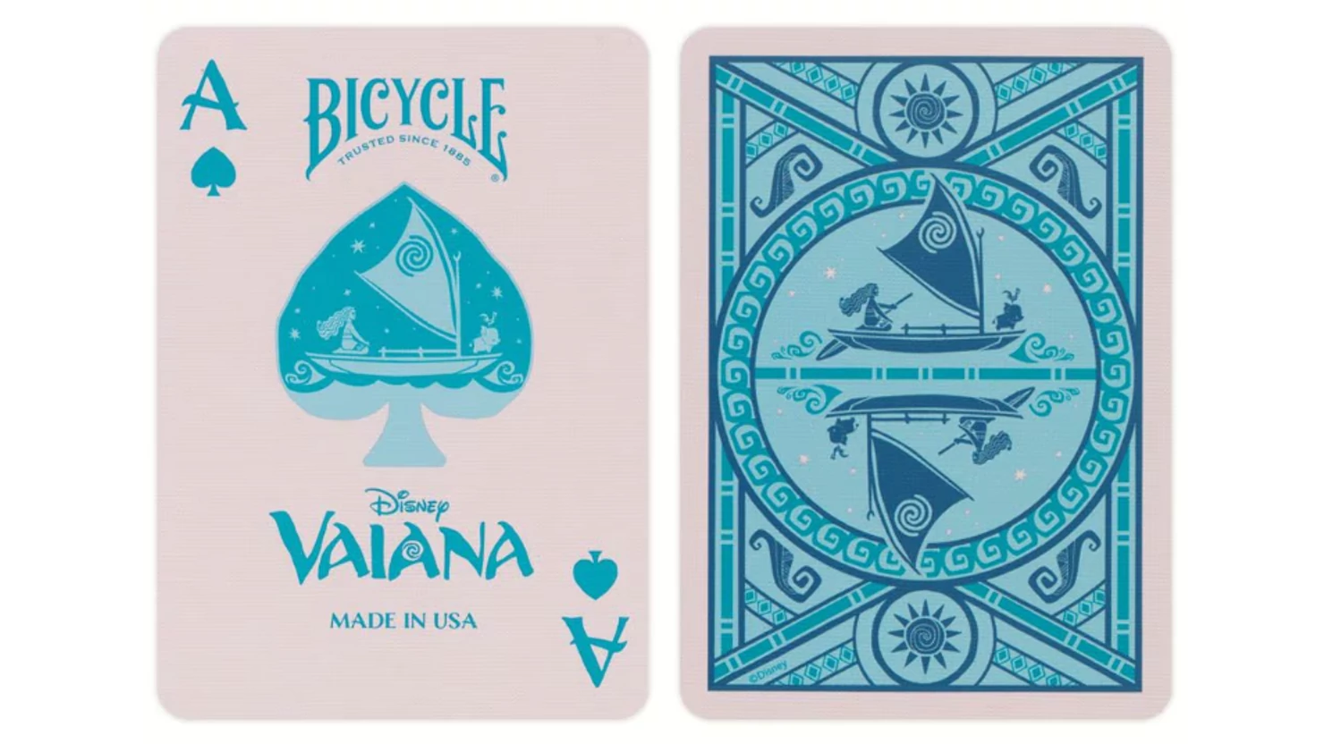 Take your next game night on a sea bound adventure to Te Fiti with Disney Moana Inspired Playing Cards by Bicycle! Inside your will find Moana, Maui, along with "boat snacks" Hei Hei the chicken and Pua the pig!