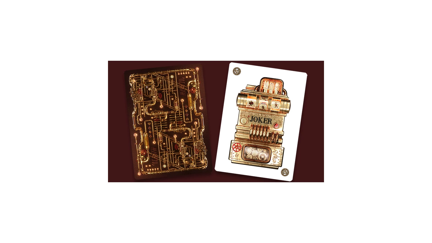 The Victorian Playing Cards Steampunk Edition deck is a new design based on the previous successful Victorian campaign. It is composed of fifty two cards and two jokers. The project main idea is to replace the traditional court cards by symbols: scepter for the king, rose for the queen and pistol for the jack. Other cards stays as usual. The main colors of the indexes are gold for the red and dark brown for the blacks. The cards are mirrored so they look the same upside down with subtitle differences.